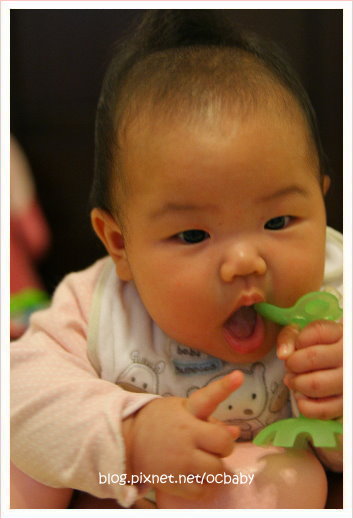 PS...永遠在口腔期的張小力...也很"哈"妺妺的小綠花..不過咧....媽媽不給..