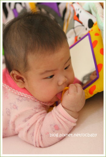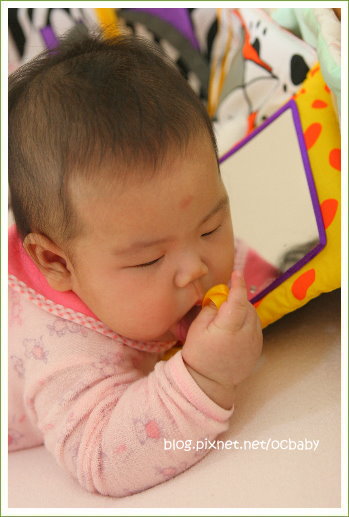 玩膩鋼琴就滾走 可惜在床上滾不遠 就在哼哼咿咿的