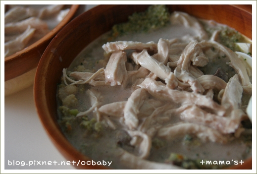 灰灰的水應該是骨漿汁 營養品還未添加 只記得在撕雞肉時 那個雞胸被我掌控的很好!超嫩的!!