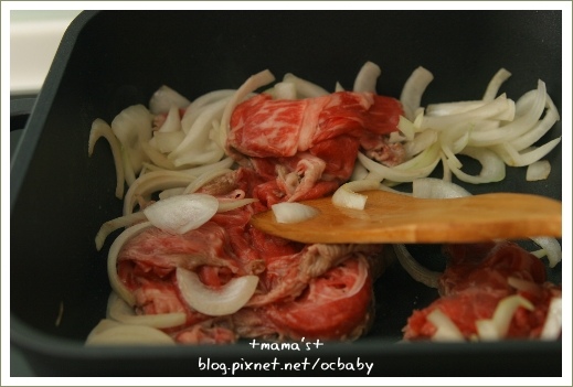 一顆洋蔥切一切炒一炒 再加一盒火鍋牛肉片炒一炒