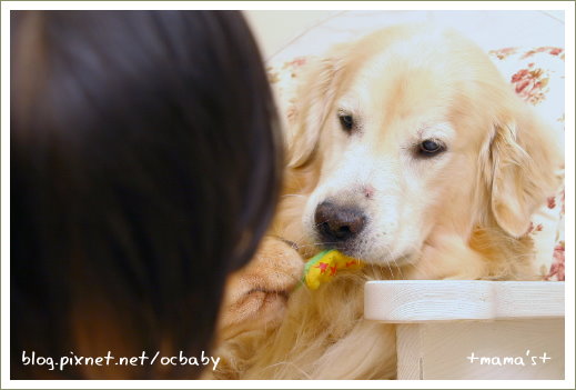 這樣玩了幾輪 KIKI看到小力又有東西咬 馬上出動