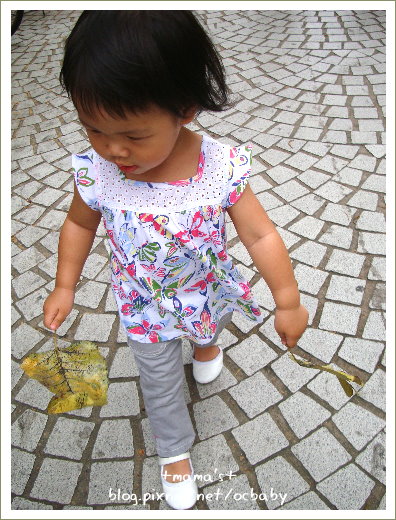 看到路上有葉子 又去撿了