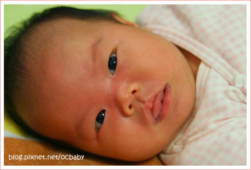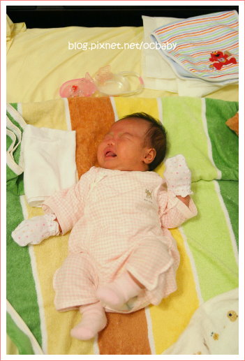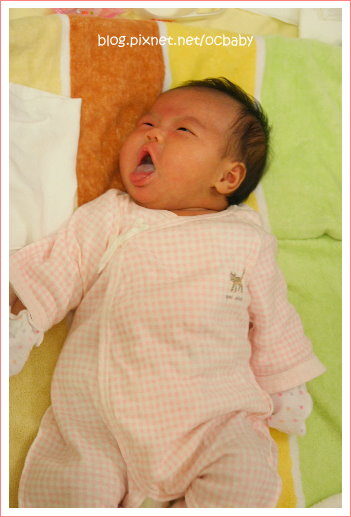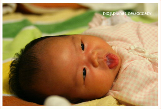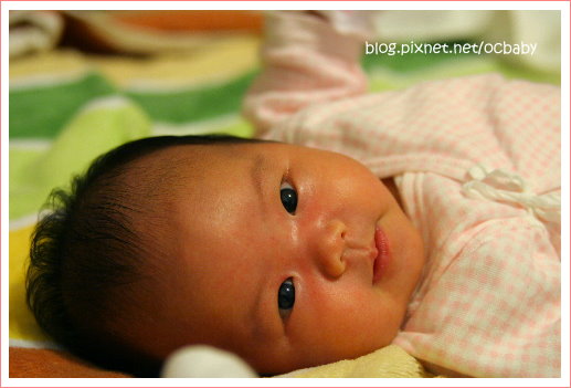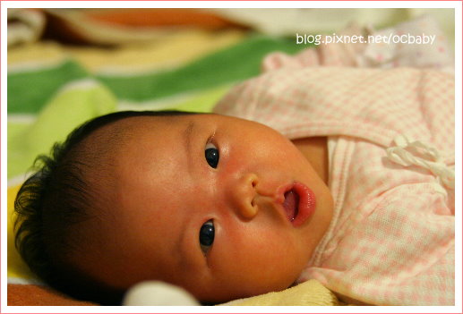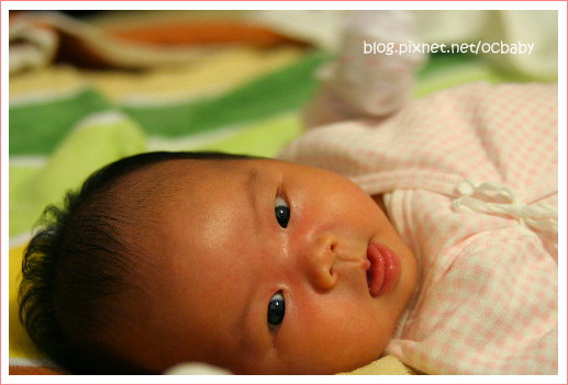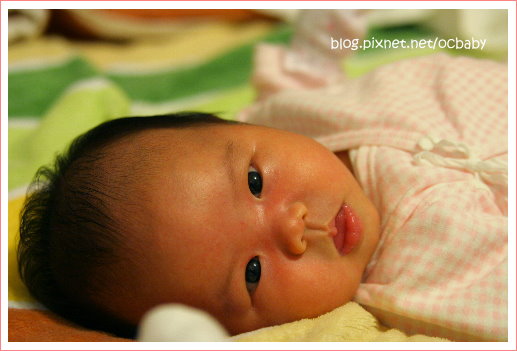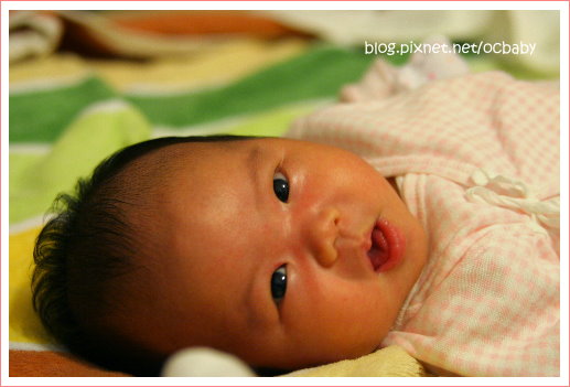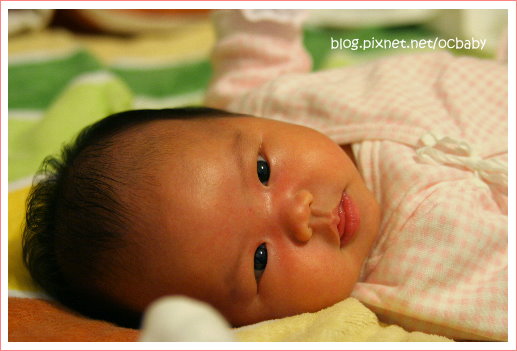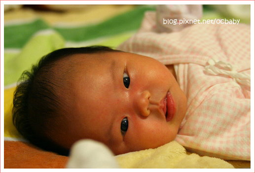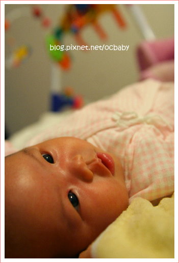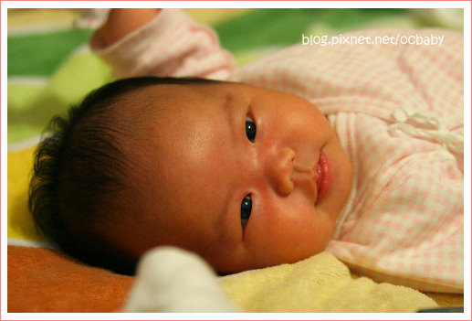 換好尿布..吃完奶奶..打完嗝..心情好....乖乖的躺在床上...開始發呆..