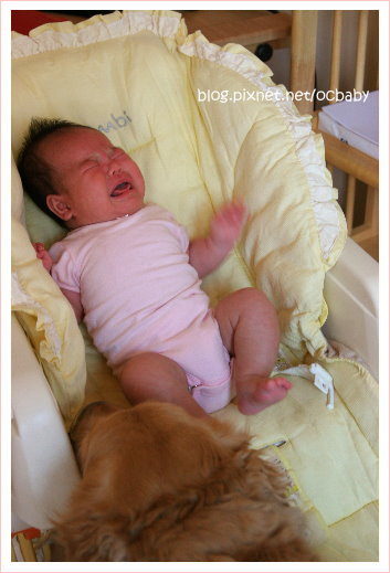 KIKI就很愛妺妺了...妹妺在樓上時..她就一直守在搖床邊