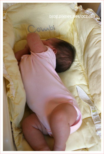 折一折..動一動...加上媽媽給她搖搖床一下....開始想睡...((那個表情很好笑捏...))